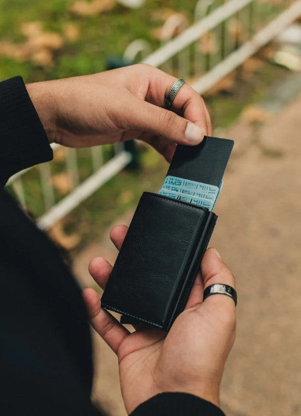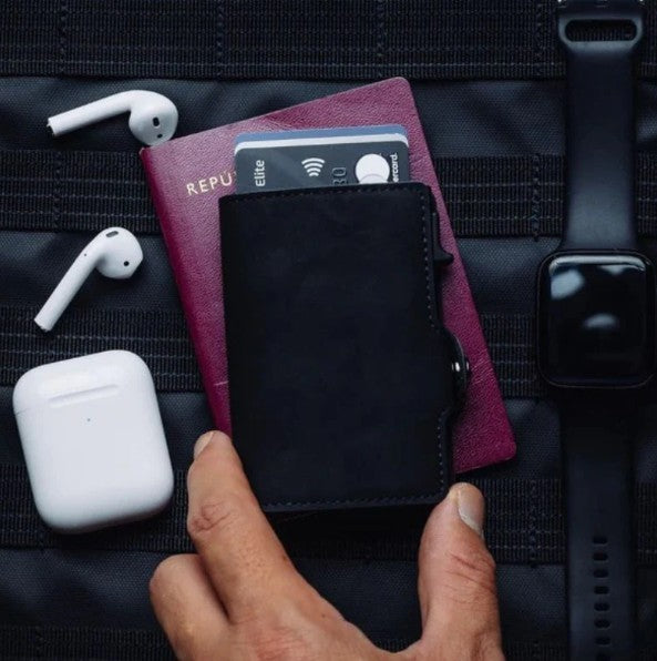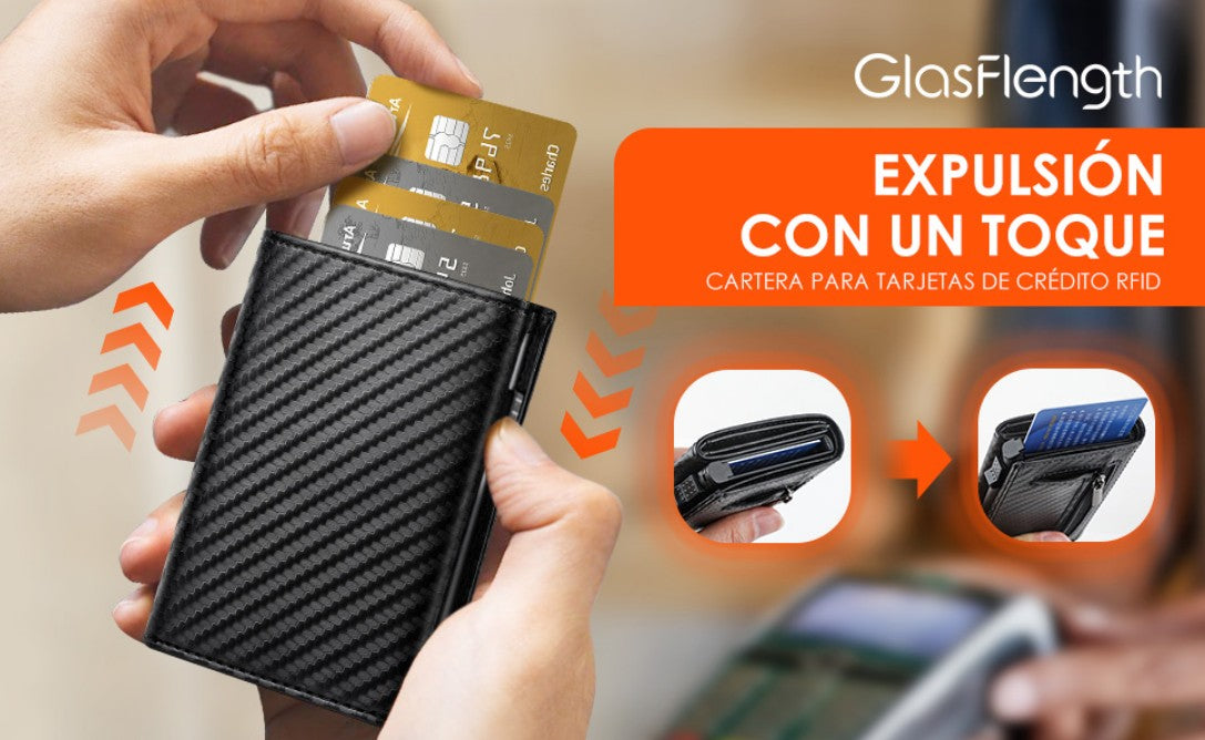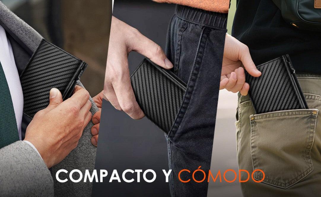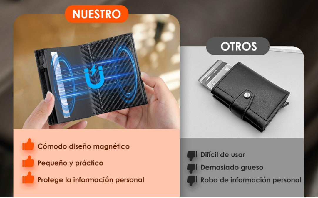 ¿Cansado de llevar una billetera voluminosa, insegura y difícil de manejar? Imagina una cartera elegante, minimalista, segura y práctica que puedas abrir con un solo toque.